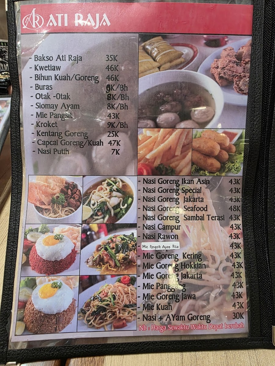 Introducing the menu of Ati Raja, a culinary gem situated in the heart of Makassar, Indonesia, where the flavors of traditional cuisine come alive. Renowned for its authentic bakso (meatballs), this restaurant offers a delightful mix of textures and tastes that keep patrons returning for more. The standout dish, the Bakso Ati Raja mix, is a must-try. It features a perfect blend of bakso, boiled nyuknyang, and fried nyuknyang.